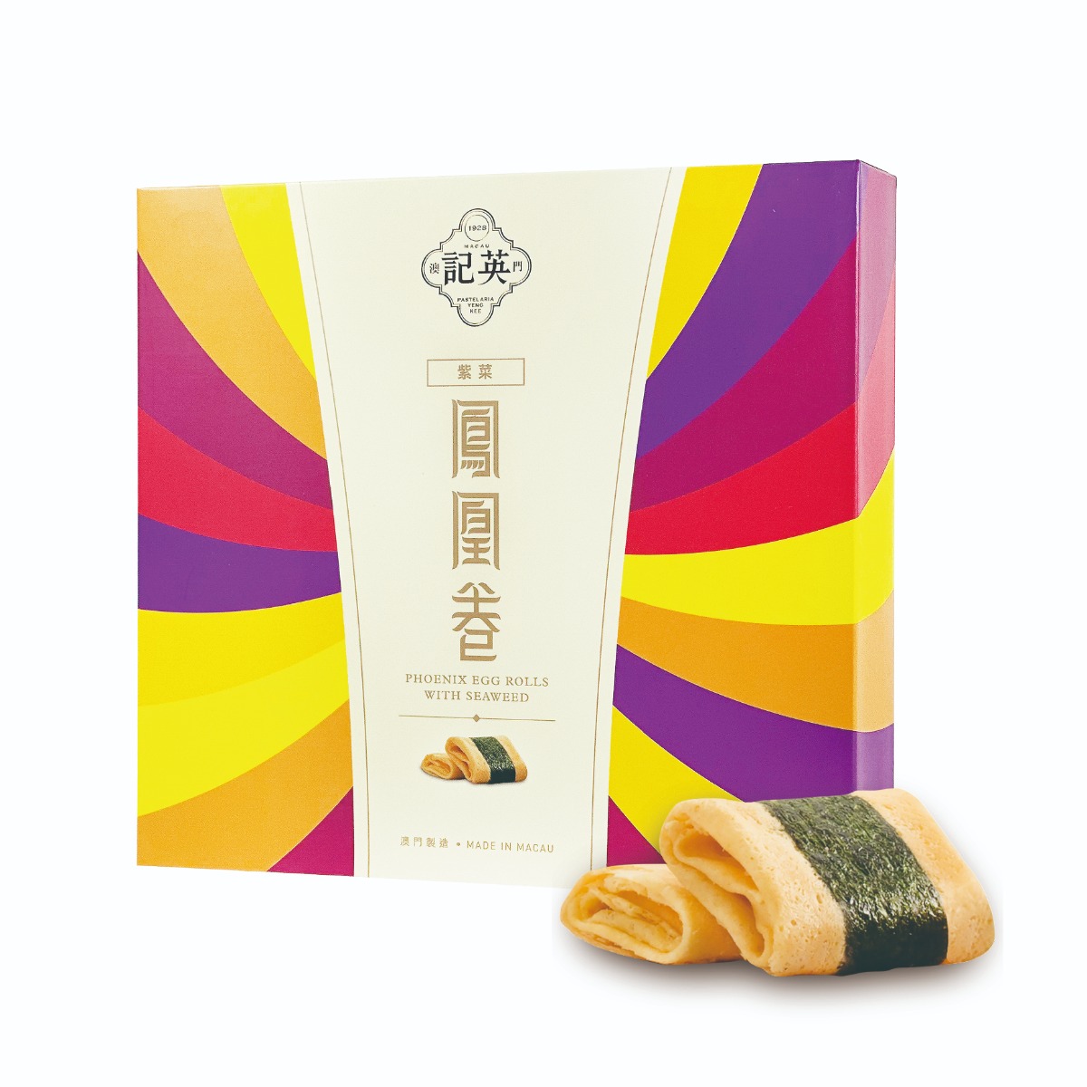 紫菜鳳凰卷是澳門的傳統餅食,選用進口上乘原材料及農場土雞蛋,金黃酥脆的蛋卷外皮,加上香脆紫菜、鮮甜椰絲和噴香芝麻,每一口都吃到層層鬆化的濃郁蛋香,讓人一試難忘。