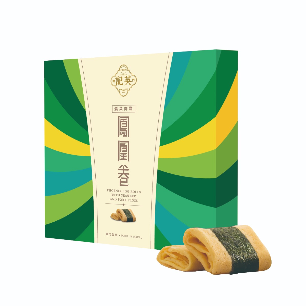 澳門英記的紫菜肉鬆鳳凰卷是傳統的創新之作,選用上乘原材料及農場土雞蛋,金黃酥脆的蛋卷外皮加入咸香肉鬆與香脆紫菜、鮮甜椰絲與噴香芝麻,每一口都吃到層層鬆化的濃郁蛋香與咸香的紫菜肉鬆。